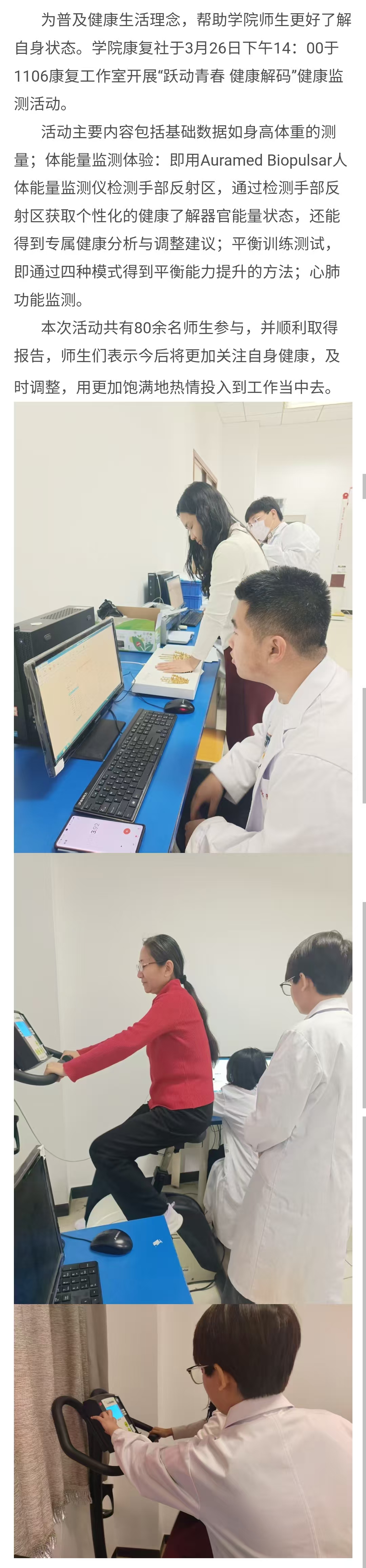 学院康复社圆满完成“跃动青春 健康解码”健康监测活动