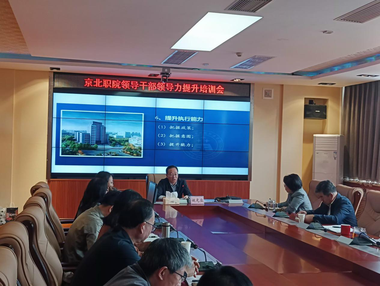 学院邀请到了原北京电子科技职业学院党委副书记、院长姚光业教授为干部们授课。培训内容主要有三个部分,首先,在领导力理论基础部分,姚教授介绍了领导科学、管理科学和领导力理论。其次,在学校领导力提升部分,强调要强化理论武装,增强战略思维,树立法治思维,胸怀世界眼光,把握发展大势,增强斗争本领,提升执行能力。最后,在有效的学校管理者部分,提出要做好自我管理,进行科学决策、高效治理,展现人格魅力。