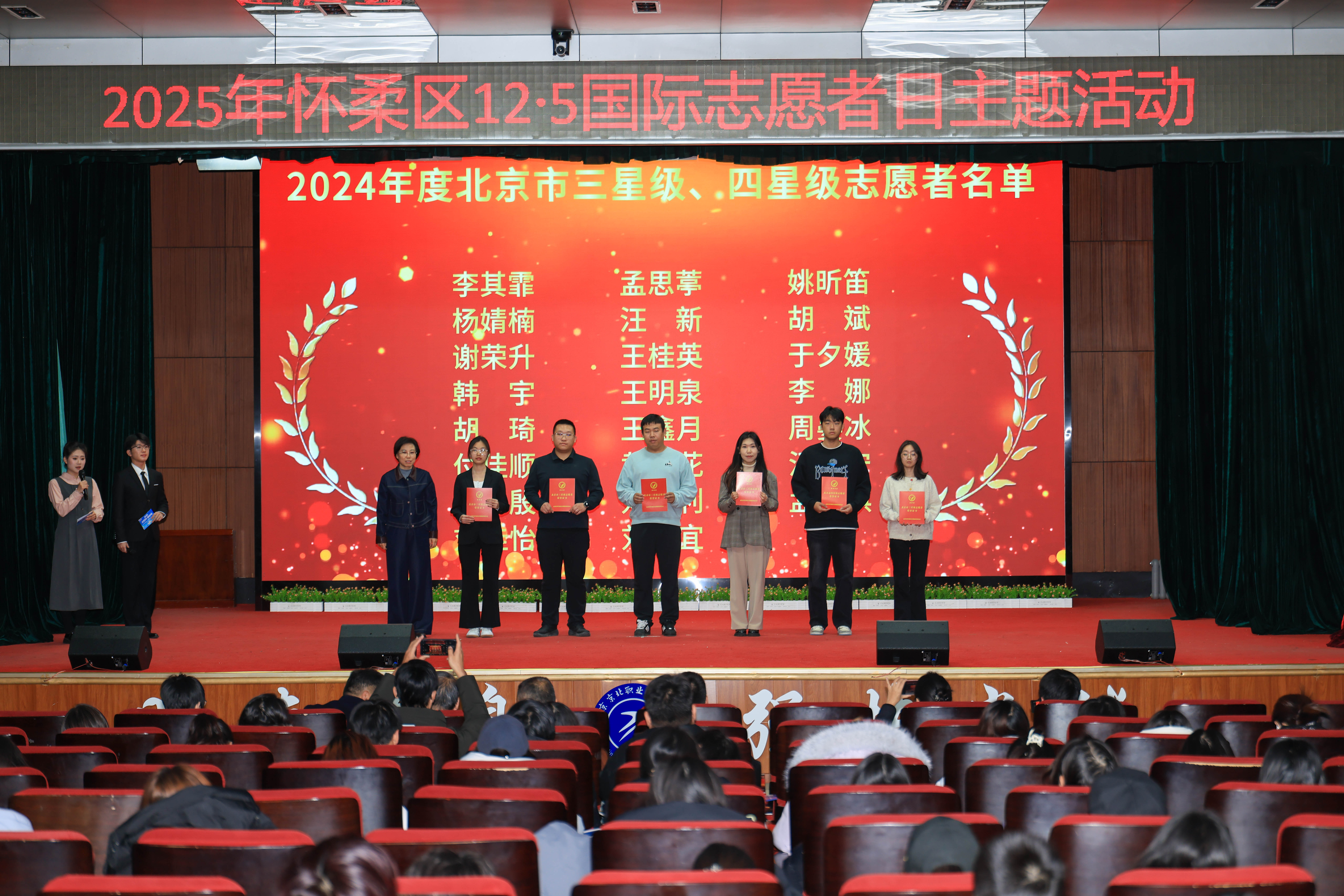 为进一步弘扬“奉献、友爱、互助、进步”的志愿精神,传递社会正能量,激发广大怀柔志愿者积极性,在第40个12·5国际志愿者日来临之际,在Beat365中文官方网站,开展了“志愿星光,情暖怀柔”2025年怀柔区12·5国际志愿者日主题活动。区委副书记、区委政法委书记莫剑彬出席活动并致辞,区委社会工作部、团区委、Beat365中文官方网站主要领导,相关单位主管领导、怀柔区志愿者代表及Beat365中文官方网站150余名师生代表参加了本次活动。