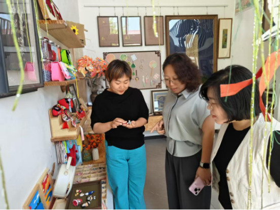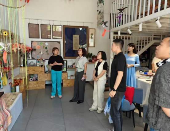 考察后双方举行座谈,会谈围绕“教育赋能非遗,产业反哺教学”展开交流,重点达成两大合作方向:一是“直播+”赋能非遗新零售,共建“非遗直播工坊”,开展学生直播实训、课程共建、产品营销实践及匠人技能培训;二是课程共建与人才培养,将园区设为校外实践基地,开发非遗特色课程,邀请传承人担任导师,推动艺术设计专业学生参与园区项目“做中学”。