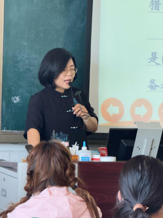 尽管执教已近二十载,伦墨华老师始终保持对教学的热忱与创新。她的课堂风趣幽默,笑声掌声不断,学生积极参与配合,把控课堂节奏的能力强,并且她将幼儿心理发展规律融入教学设计,强调"朗读不仅是技巧,更是与与幼儿心灵沟通的桥梁"。在点评环节,她不仅关注语音规范,更注重引导学生理解文本背后的情感内核。