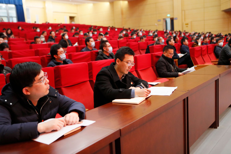 学校党史学习教育动员大会主会场设在长山校区长山剧场,学校领导班子成员、党委理论学习中心组全体成员、全体中层干部、党支部书记现场参加会议,张家港校区在分会场通过视频直播形式收看会议。
