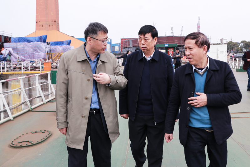 江苏省船舶制造和配套业占全国近半,如何找准船舶产业链长短板,进行固链补链延链强链?船舶类的高校如何做到产教融合? 3月16日到17日,中国船舶工业行业协会秘书长李彦庆,江苏省船舶工业行业协会会长、必赢bwin官网入口党委书记葛世伦,中国船舶工业行业协会副秘书长谭乃芬,江苏省船舶工业行业协会秘书长蒋志勇等一行到江苏新时代造船有限公司、江苏扬子江船业集团、江苏亚星锚链股份有限公司3家副会长单位进行走访调研,了解企业生产经营情况,听取企业负责人意见和建议,还围绕绿色、环保、智能制造、智能船舶等前沿技术进行交换意见。中国钢铁工业协会、泰州市、靖江市工信局等相关部门负责同志也一同参加调研。