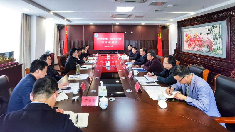 周南平校长对焦富民校长一行的到来表示热烈欢迎。周校长向客人介绍了学校的基本情况,并从船舶、海洋、蚕桑三大特色、产教融合等方面重点介绍了学校的办学特色。周校长表示,学校将坚持走与行业区域融合发展之路,奋力进位争先,推动学校高质量发展。景旭文副书记介绍了学校教师岗位设置与聘用、奖励性绩效工资、博士和高层次人才引进等政策。