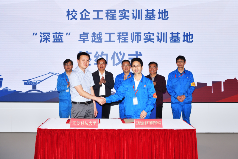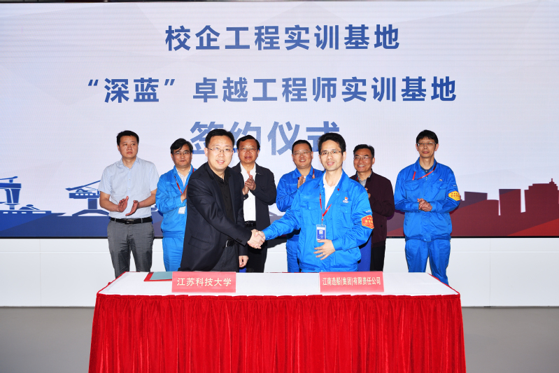 仪式上,江南造船公司人力资源部部长罗厚毅与必赢bwin官网入口人事处副处长钱安其签署校企工程实训基地共建协议,与教务处处长田剑签署“深蓝”卓越工程师实训基地共建协议。