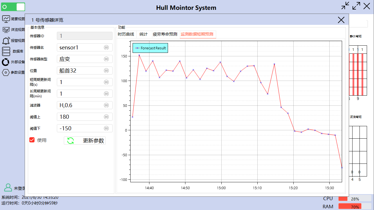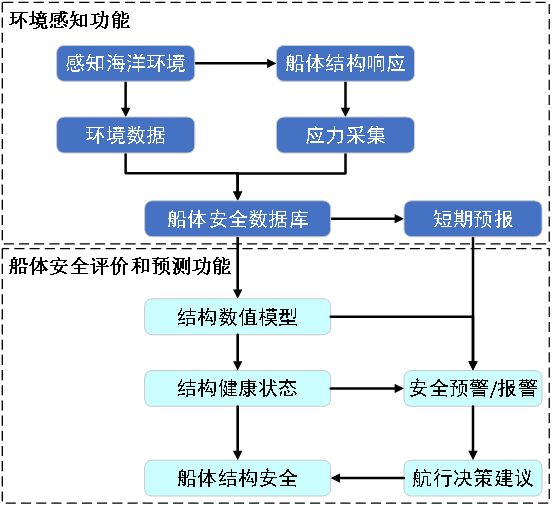 智能船体监测系统软件系统主要用于高端智能船舶的实时安全状态评价和未来短期的安全预测。该系统通过在船体结构中植入传感器,结合数据采集、数据预处理、屈服强度评估、疲劳强度评估、总纵强度评估、振动监测、数据库管理等技术,形成具备船体结构自动监测功能的系统,能够实时监测船舶指定区域的结构状态,对危险应力进行报警,能给船员提供及时有效的决策信息。