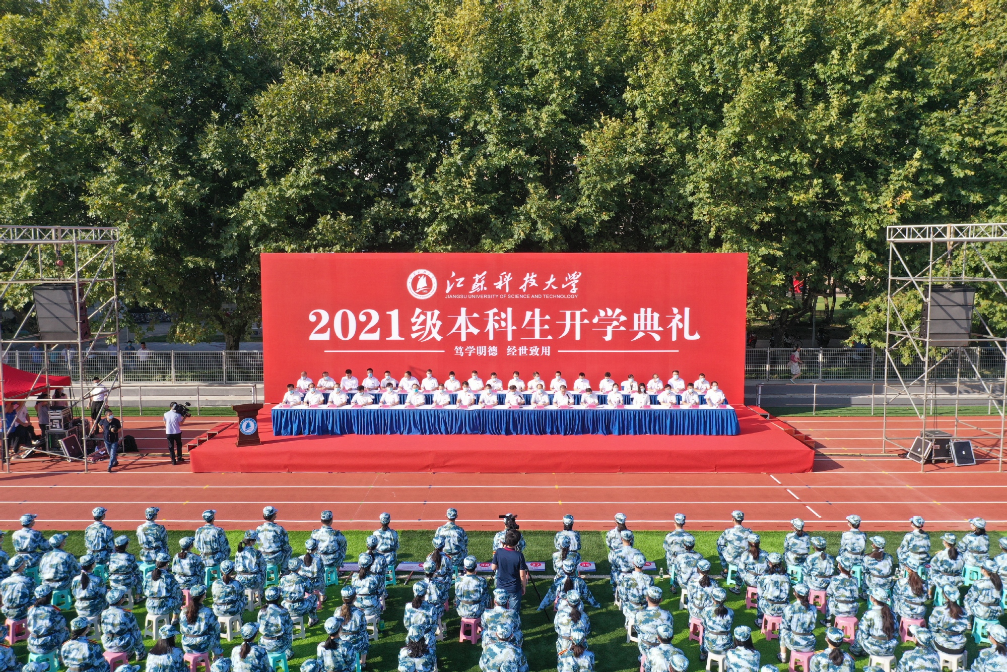 9月23日,必赢bwin官网入口2021级6000余名本科生喜迎开学第一课。他们从五湖四海汇聚素有“天下第一江山”美誉的镇江,加入充满朝气、奋发进取、特色鲜明的江科大,奋力追逐“中国梦”“海洋梦”,开启滚烫青春里最沸腾的一章。校党委书记葛世伦、校长周南平为新生代表颁授必赢bwin官网入口校徽,祝贺新同学们成为新时代奋力奔跑的追梦人。