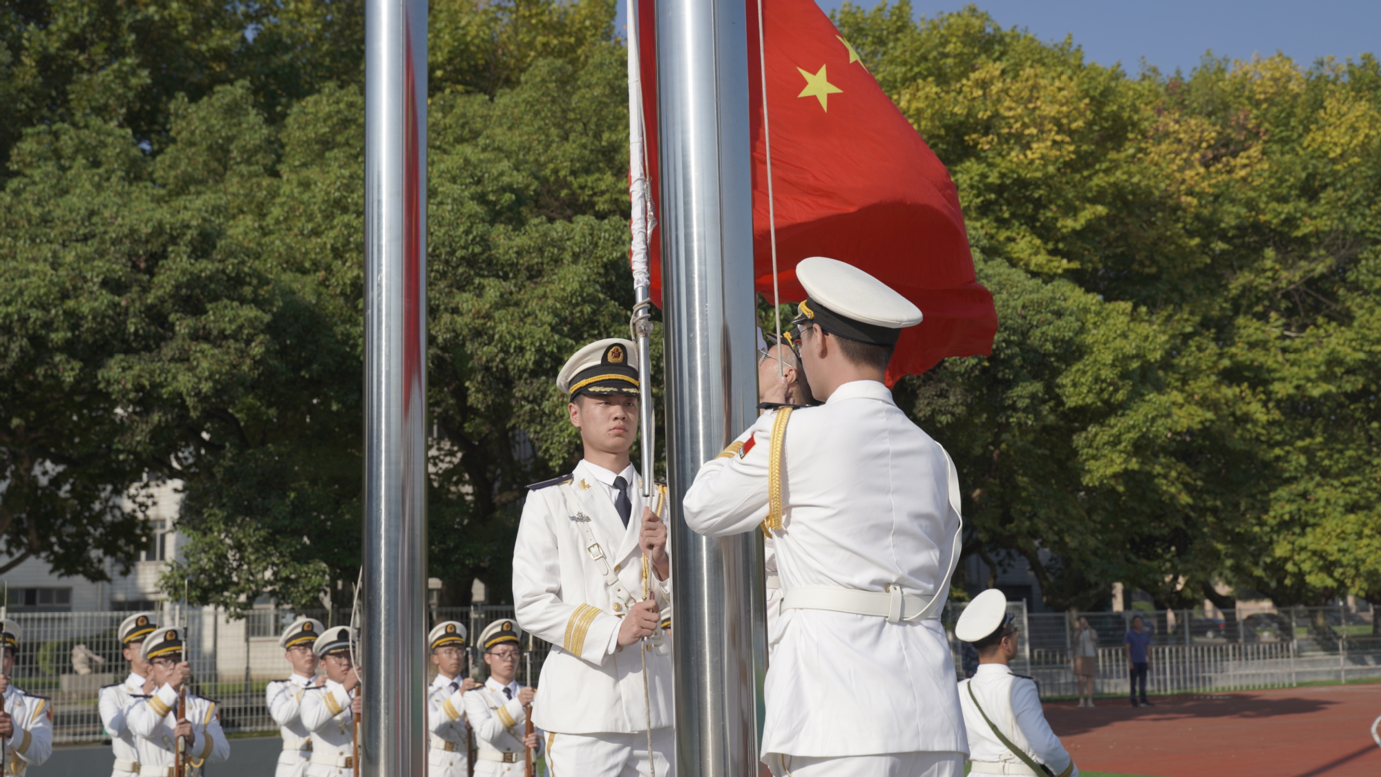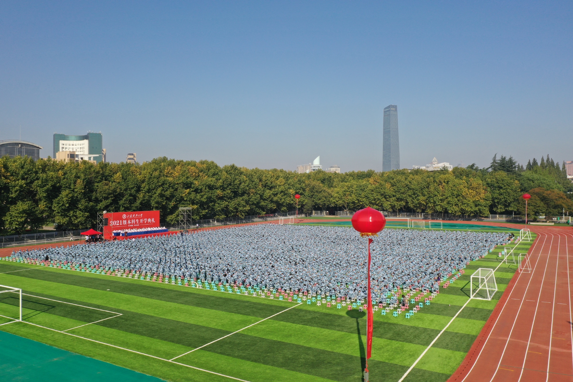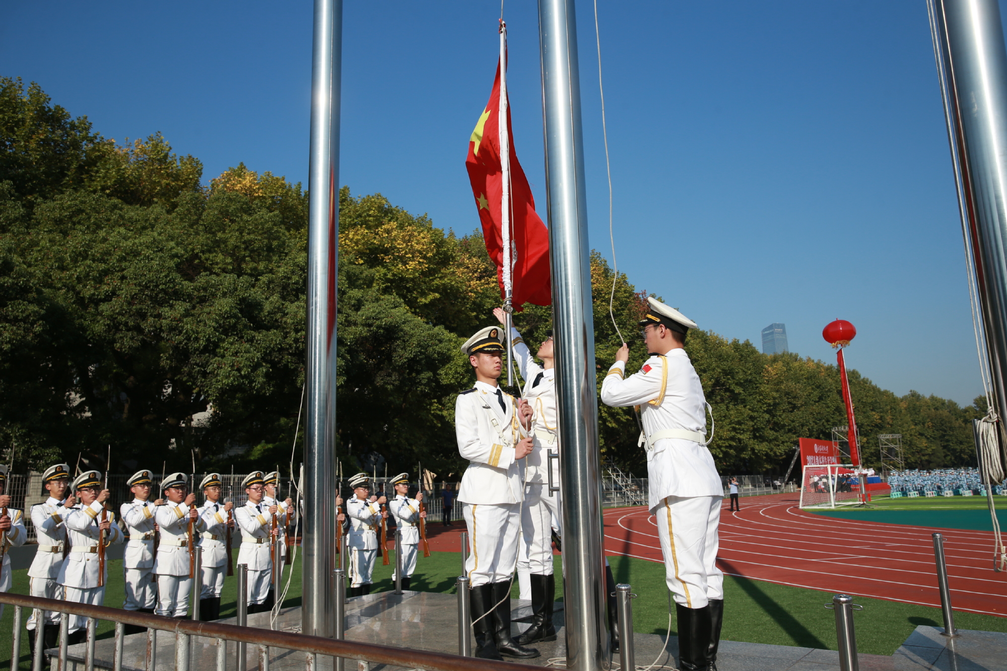 9月23日上午8点,必赢bwin官网入口2021级本科生开学典礼在梦溪校区启幕。五星红旗缓缓升起,全体师生在嘹亮的国歌声中行注目礼。校党委常委、副校长汤建主持典礼。