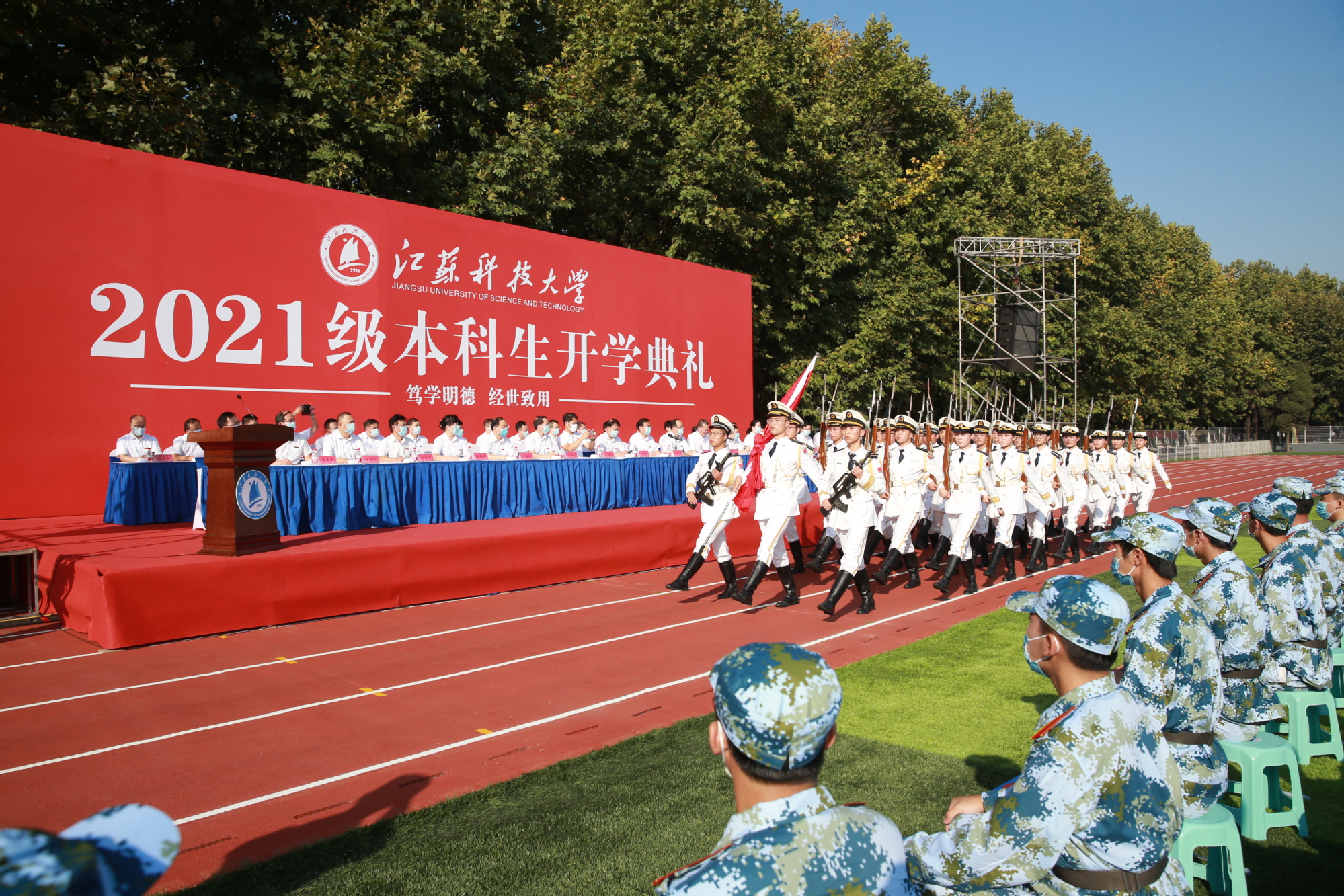 乘长风,破巨浪;扬云帆,跨海洋。开学典礼在必赢bwin官网入口校歌声中圆满结束。2021级新生将秉承笃学明德、经世致用的校训,在奋斗中绽放青春光芒。