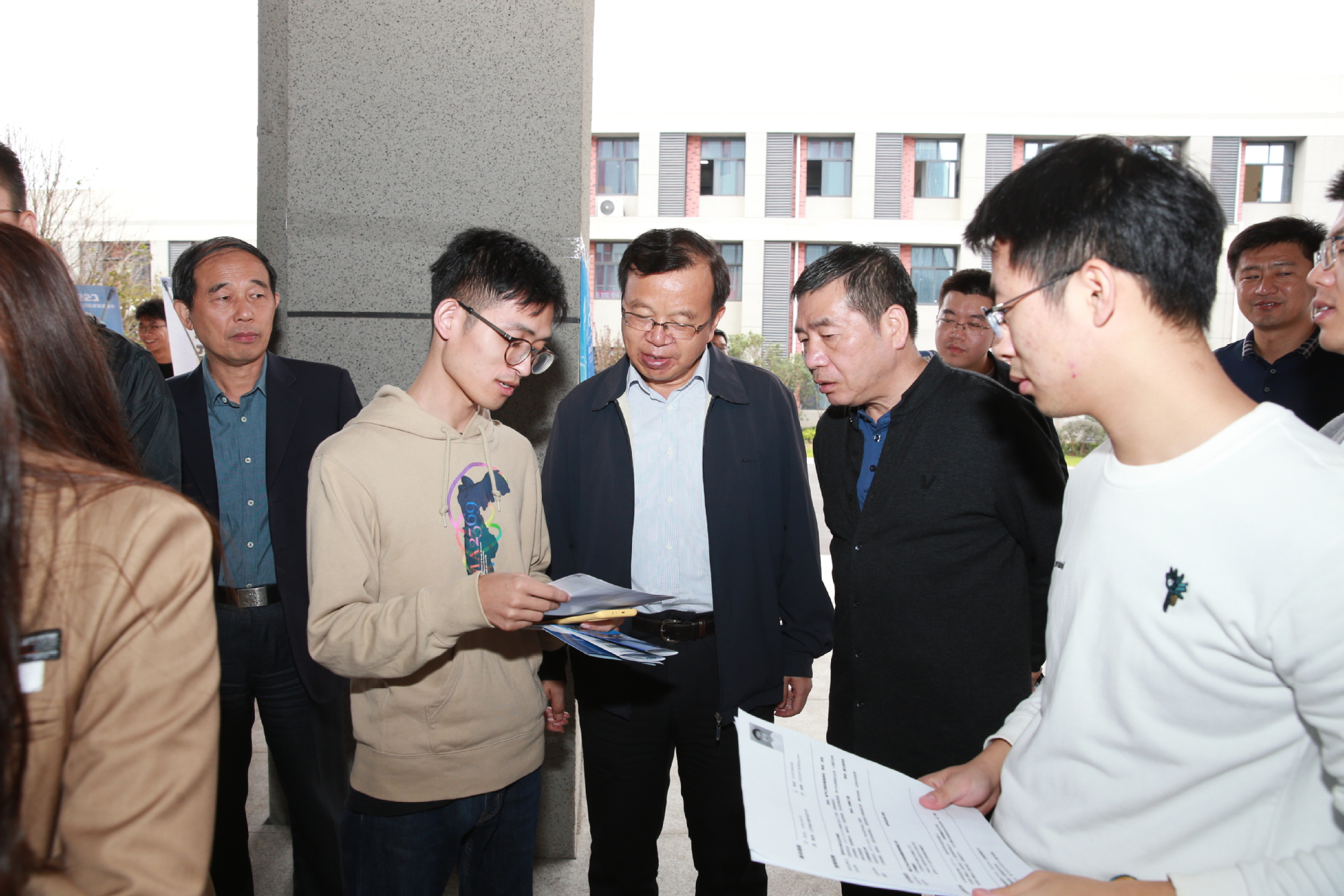 招聘会现场,周南平校长走进学生中间,了解同学们的准备情况,询问就业的意愿,现场为同学们鼓劲打气。