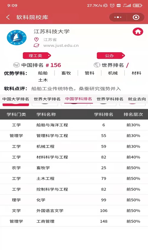 必赢官网上榜学科中,有3个学科进入全国排名前30%,1个学科进入全国排名前40%,6个学科进入全国排名前50%。其中,船舶与海洋工程学科排名位列全国第6位,进入国内前30%;管理科学与工程学科国内排名第55位,较2020年提升4位,进入国内排名前30%;机械工程学科国内排名第59位,较2020年提升7位,进入国内排名前30%;材料科学与工程学科国内排名第82位,排名国内前40%,畜牧学学科国内排名第25位,排名国内前50%,土木工程学科国内排名第79位,排名国内前50%。