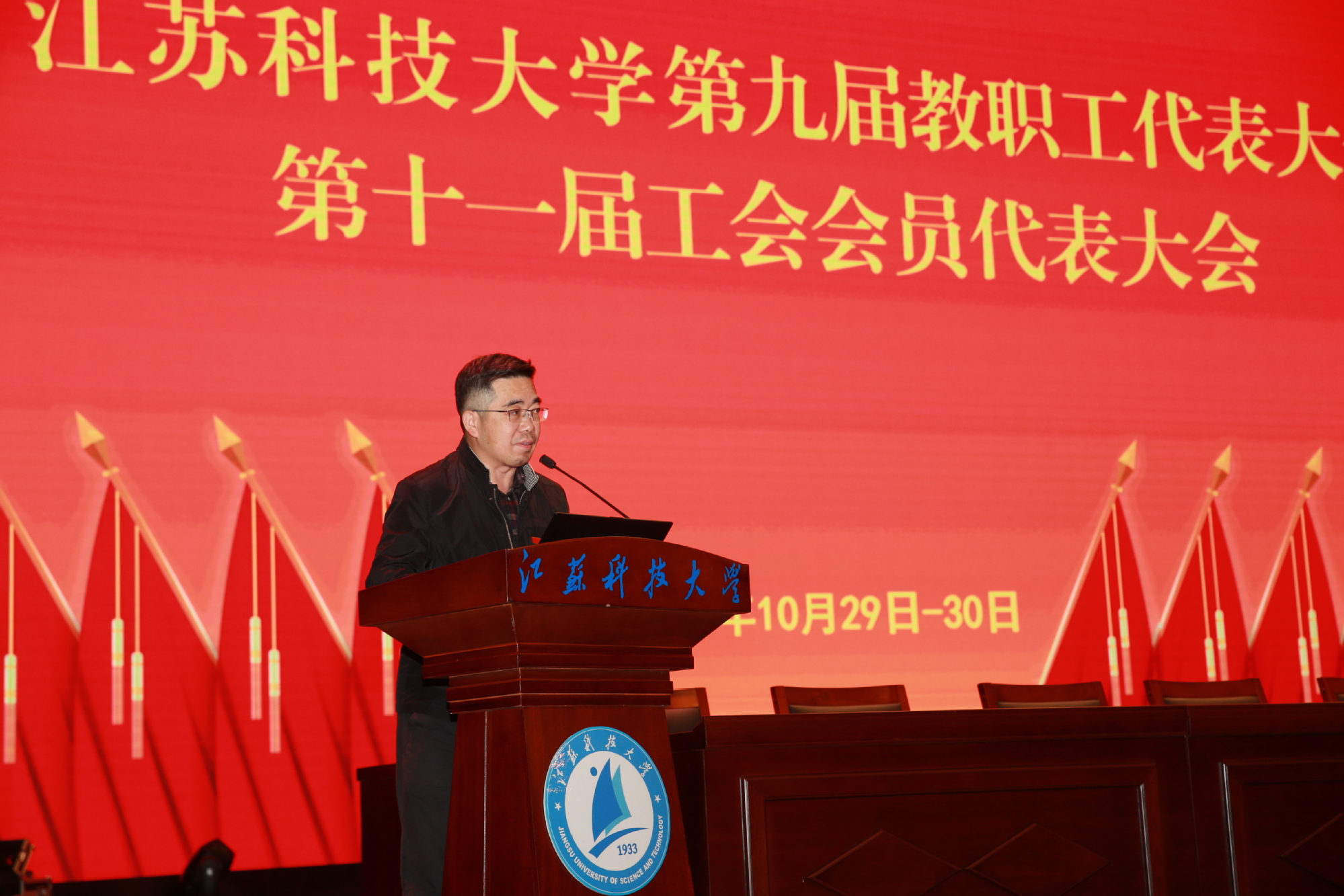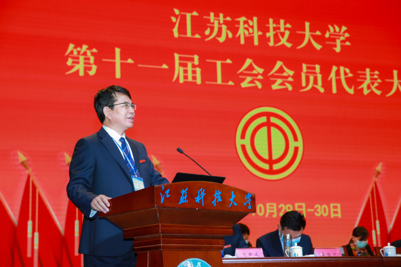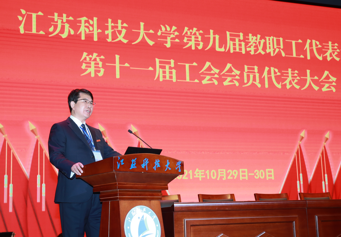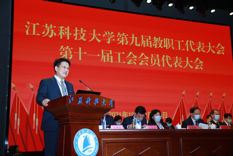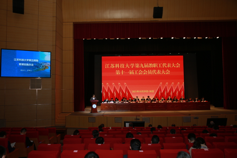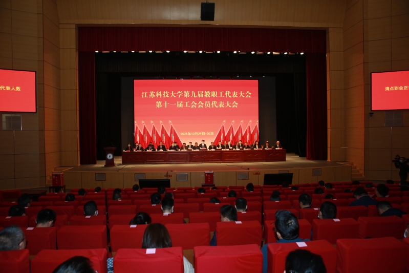 10月29日至30日,必赢bwin官网入口第九届教职工代表大会、第十一届工会会员代表大会在长山校区船苑剧场隆重召开。江苏省教育科技工会二级调研员孙焱,镇江市总工会党组书记、副主席刘正泰,镇江市总工会基层工作部部长陈玉松,镇江市教育工会主席黄勇应邀出席大会。校领导葛世伦、周南平、景旭文、许俊华、王加友、汤建、俞孟蕻、郑培钢、谈镇、嵇春艳、任南,校党委常委李恒川、周春燕、刘新波及全体正式代表、特邀代表、列席人员260余人参加会议。