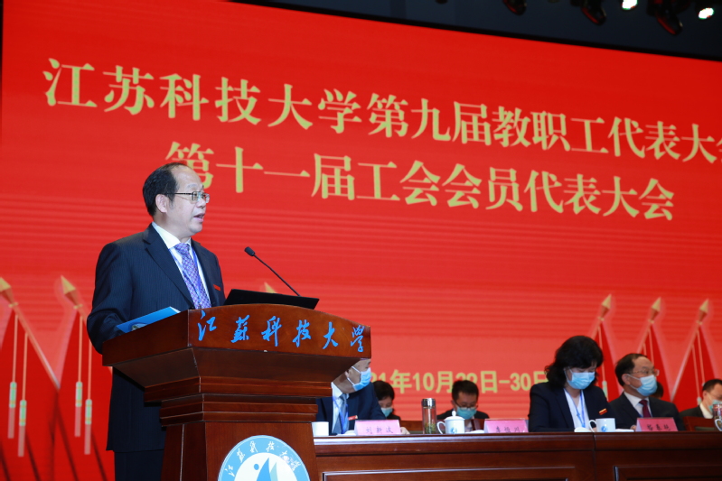大会号召,全体师生员工要统一思想认识,深入贯彻习近平新时代中国特色社会主义思想、党的十九大和十九届二中、三中、四中、五中全会精神,全面贯彻党的教育方针,精准把握国家、行业发展大势,准确把握发展海洋经济推进建设海洋强国的战略机遇,紧紧抓住学校入选江苏高水平大学建设高峰计划建设高校的新机遇,以更加昂扬的斗志、更加饱满的热情,凝心聚力,砥砺奋进,为实现学校高质量发展、早日建成“国内一流造船大学”而不断努力奋斗!