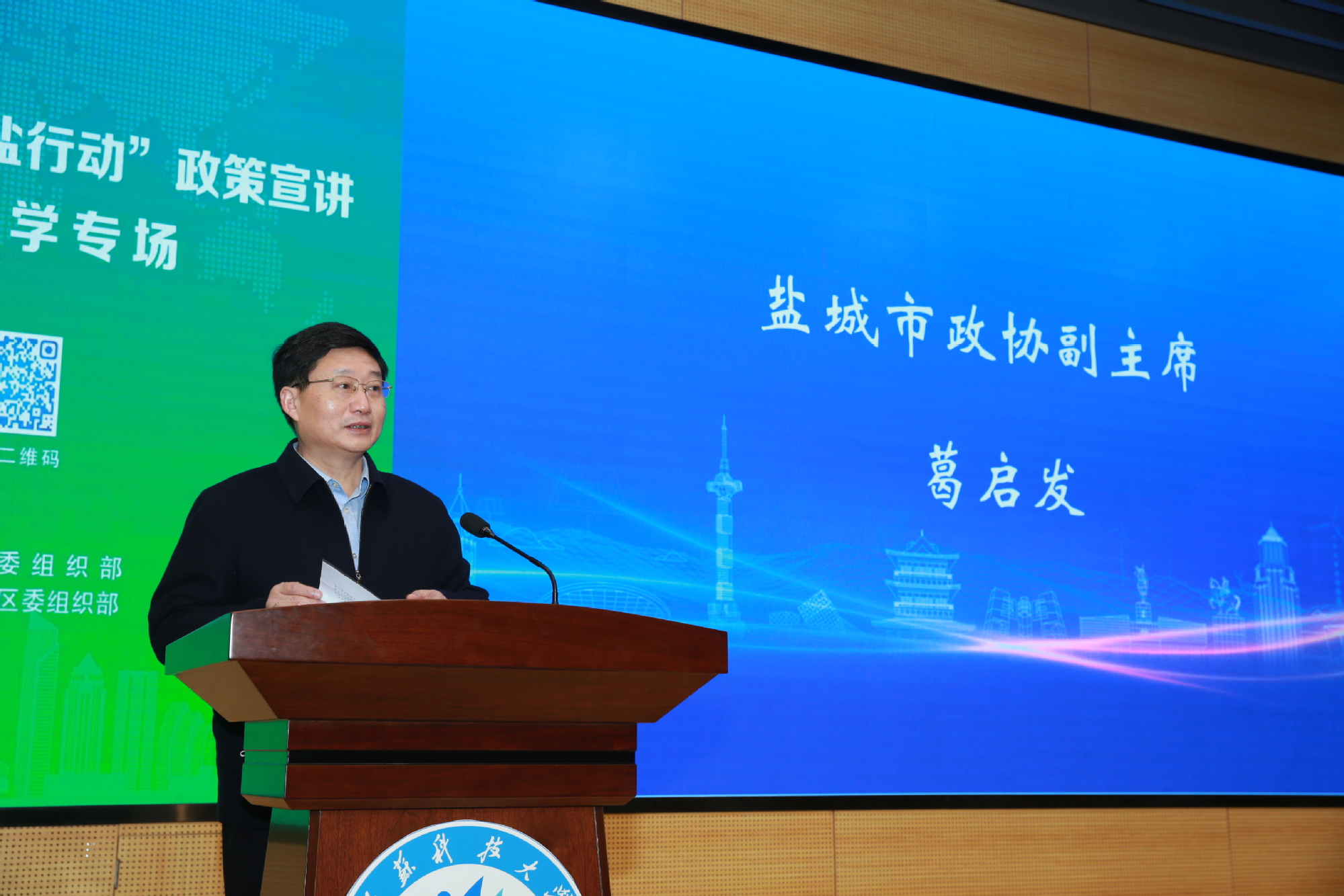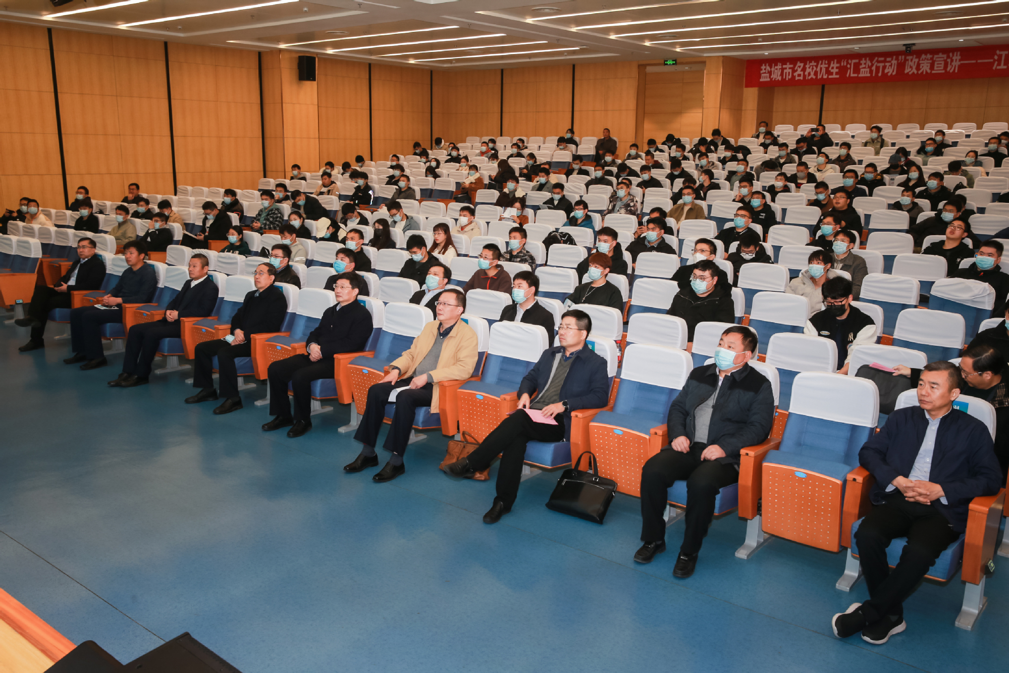 11月26号上午,盐城市名校优生“汇盐行动”政策宣讲会在必赢bwin官网入口长山校区图书馆报告厅105举行。活动由盐城市盐都区委常委、组织部长周达虎主持,盐城市政协副主席葛启发,纪委监委第二派驻纪检监察组组长吴宏庆,必赢官网副校长汤建、学生工作部部长蒋春雷、研究生工作部部长祁凯等出席,教职工代表及300余名毕业生参加此次宣讲会。