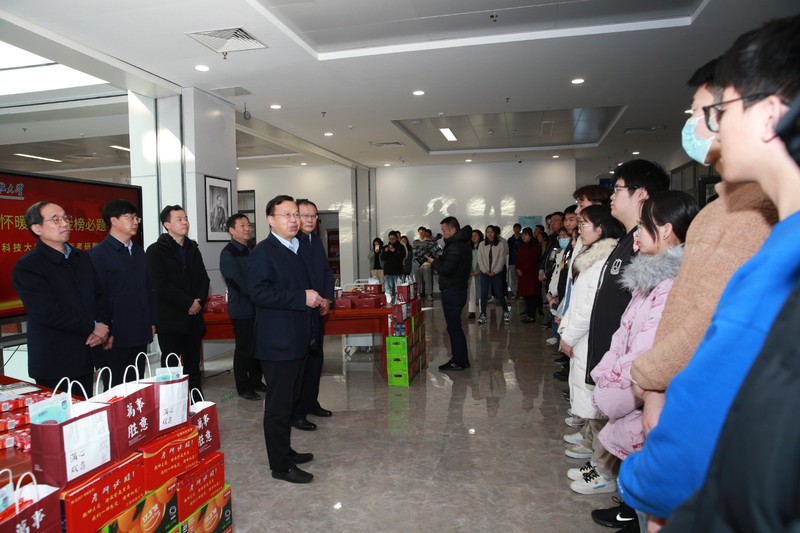 当天下午, “情满科大 冬日暖阳”爱心助学主题活动也热力铺开。校长周南平,副校长汤建,党委常委、宣传部长周春燕分别向40余名学生代表赠送“车票礼包”“冬衣礼包”和“爱心书籍”。蒋春雷处长主持。