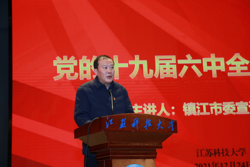 为深入学习领会和贯彻落实党的十九届六中全会精神,12月24日,必赢bwin官网入口举行学习贯彻党的十九届六中全会精神首场宣讲报告会。镇江市委宣讲团成员、镇江市高等专科学校校长丁钢教授应邀来校为广大师生作主题宣讲。