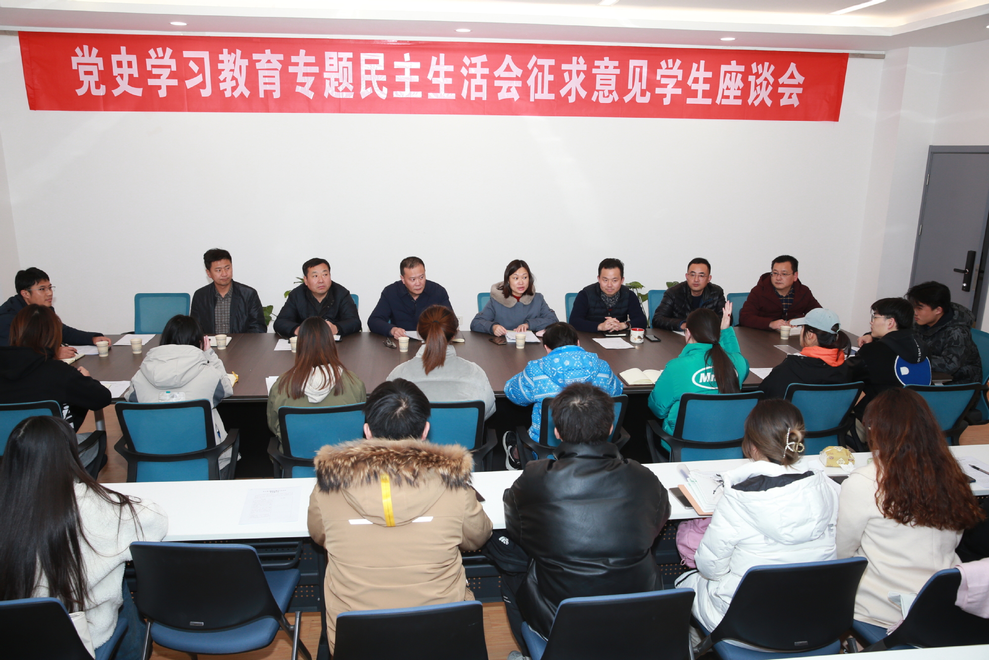 1月5日下午,学校在校团委会议室举办了党史学习教育专题民主生活会征求意见学生座谈会。校党委常委、副校长汤建、党委办公室、组织部、宣传部、校纪检监察机关、学生工作部、研究生工作部、团委等部门相关同志和学生代表参加座谈。会议由党委常委、宣传部部长周春燕主持。