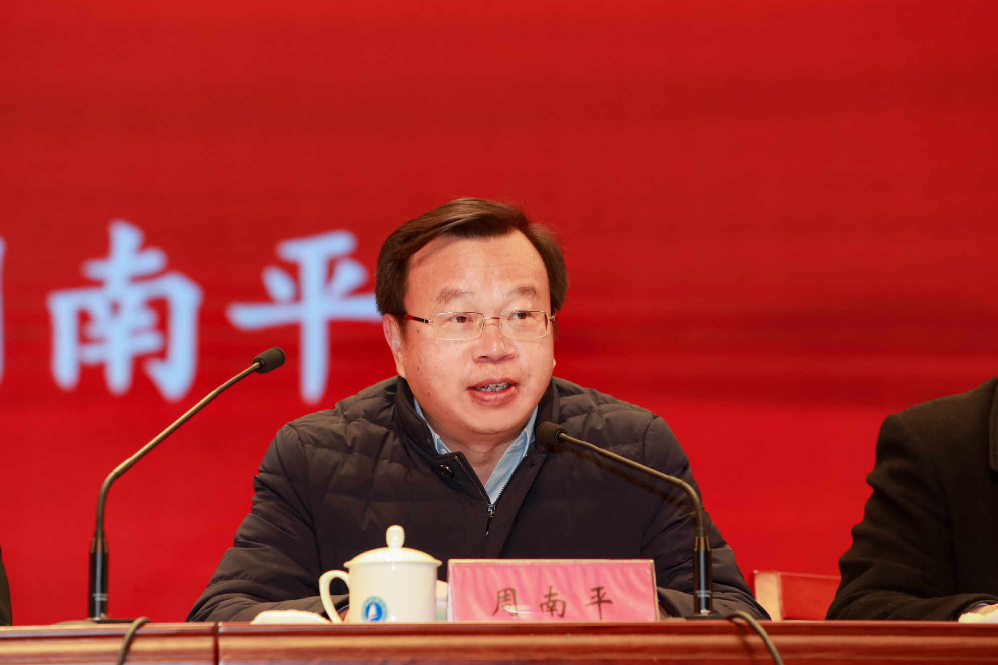 校长周南平作《乘势而上 精准务实 接续奋斗 凝心聚力 启航高水平大学建设新征程》的报告。他强调,立足学校发展的新起点,大家必须把思想高度统一到推进高水平大学建设上来,要有建设高水平大学的追求和自信,以更强烈的使命担当推进高水平大学建设,以更鲜明的办学特色赋能“十四五”高质量发展。
