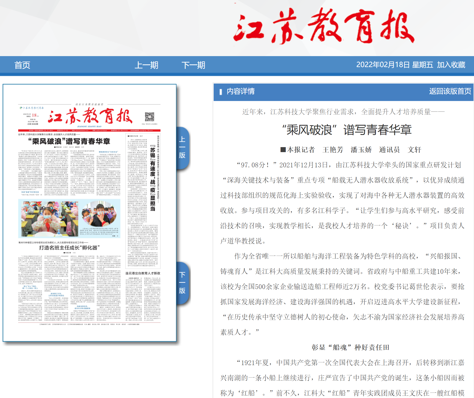作为全省唯一一所以船舶与海洋工程装备为特色学科的高校,“兴船报国、铸魂育人”是江科大高质量发展秉持的关键词。省政府与中船重工共建10年来,该校为全国500余家企业输送造船工程师近2万名。校党委书记葛世伦表示,要抢抓国家发展海洋经济、建设海洋强国的机遇,开启迈进高水平大学建设新征程,“在历史传承中坚守立德树人的初心使命,矢志不渝为国家经济社会发展培养高素质人才。”