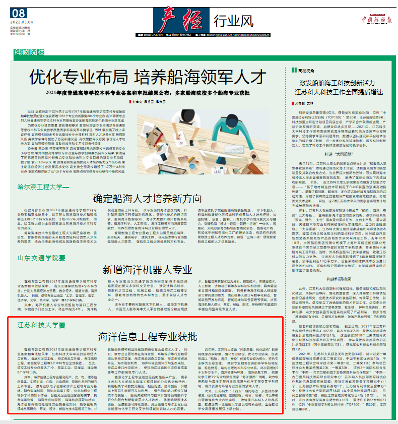 中国船舶报:优化专业布局 培养船海领军人才 江科大获批海洋信息工程专业