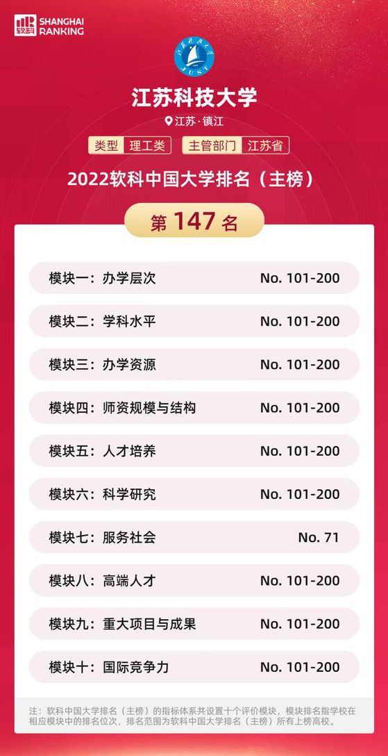 4月19日,高等教育专业评价机构软科今日正式发布“2022软科中国大学排名”。必赢bwin官网入口位列中国高校第147位,在江苏高校中排名第18位。