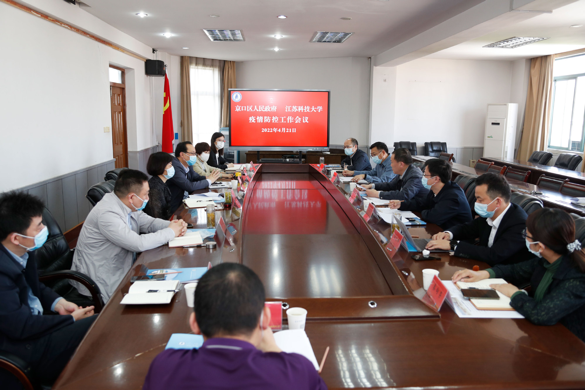 汤建对京口区委区政府在学校疫情防控工作中给予的大力支持表示感谢,介绍了梦溪校区疫情防控的基本情况。他指出,疫情防控正处于最关键的时候,加强高校与属地的交流合作,共同抗击疫情十分重要,也十分迫切。当前学校严格落实主管部门和属地管理要求,严抓校园封闭管理,细化应急演练与保障,严格落实常态化核酸检测工作。学校持续加强校园管理,严格校门管控,落实线上教学,实行行政人员AB轮值上班制,强化值班制度,优化核酸检测安排,充分发挥党员队伍和学生干部在疫情防控中的作用。他希望校地双方持续加强联防联控,科学研判疫情发展,共同推进疫情防控,切实保障学校师生的生命健康安全。