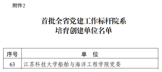 近日,江科大船舶与海洋工程学院党委入选首批“全省党建工作标杆院系”培育创建单位,机械工程学院机械制造工程系教工党支部等9个党支部入选“全省党建工作样板支部”培育创建单位。