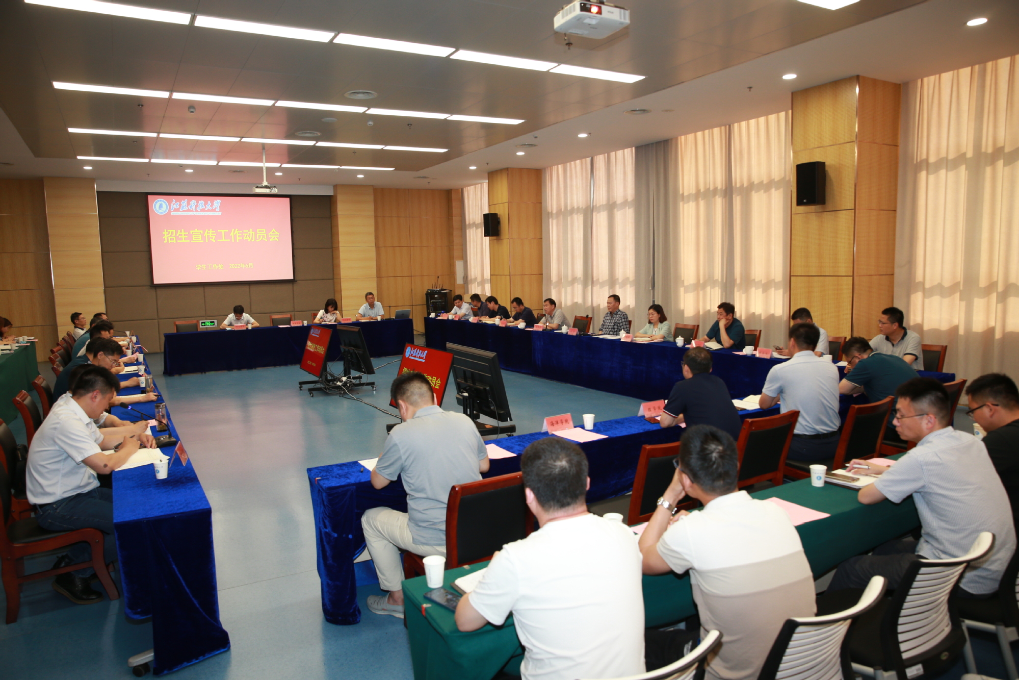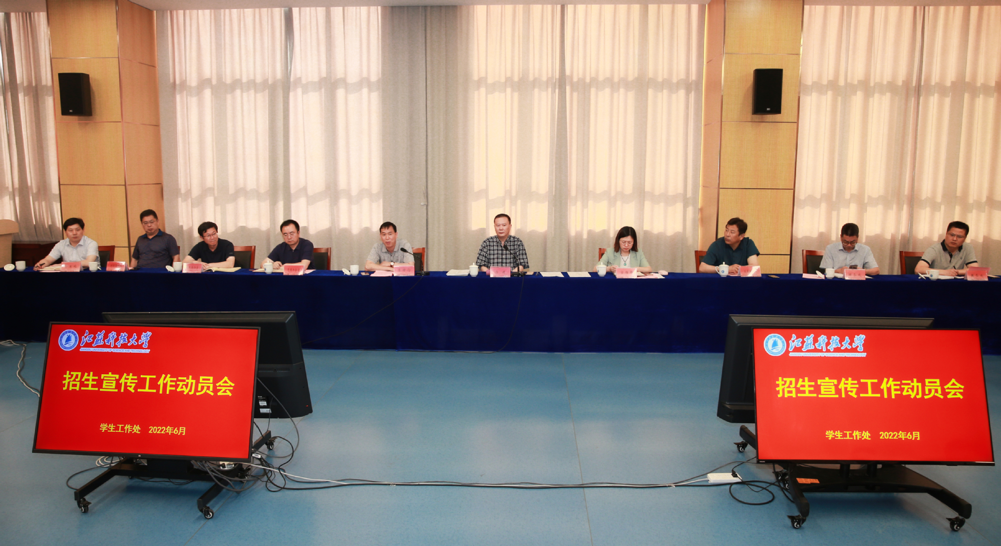6月6日下午,学校在长山校区召开2022年本科招生宣传工作动员会,校党委书记葛世伦,党委常委、宣传部长周春燕以及相关部门负责人、各学院书记、分管学生工作领导、招生工作辅导员参加会议,会议由党委常委、副校长汤建主持。