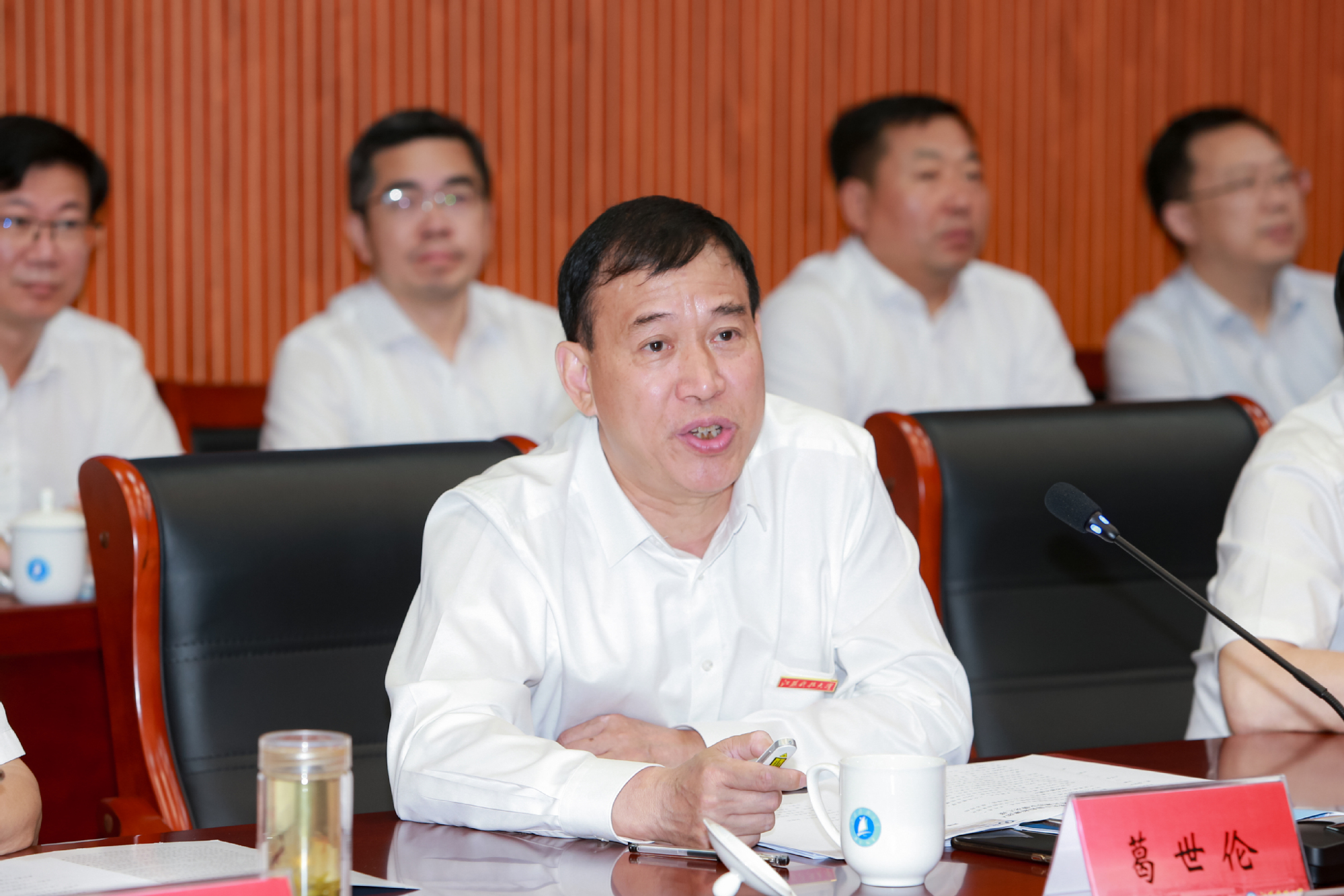 校党委书记葛世伦介绍了学校推进落实中国船舶集团与江苏省人民政府共建协议情况。他表示,学校与中国船舶集团血脉相连,在中国船舶集团和省政府的热切关心与大力支持下,学校综合实力不断增强,成为江苏高水平大学建设高峰计划建设高校,下一步学校将大力推进与集团共建船海装备智能制造技术创新中心,开展智能制造相关技术研究;共建船海装备智能制造产业学院,开展船海装备智能制造卓越人才培养;联合培养研究生;加强双方人员的交流、挂职。葛世伦指出,“铸海器,育船魂”是江科大人的初心,培养船海人才是江科大的使命,实现海洋强国、造船强国是集团和学校共同的责任,学校将进一步发挥特色优势,全力推进落实共建协议,为推动中国船舶集团高质量发展贡献江科大的智慧和力量。