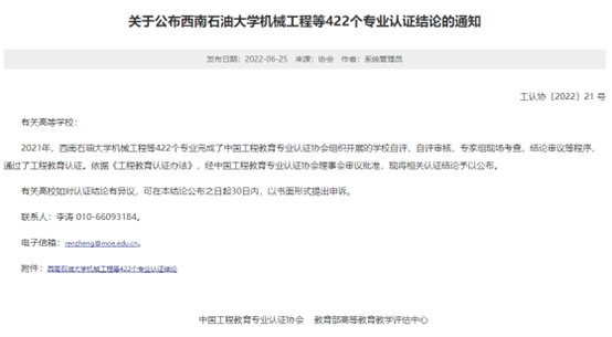 近日,中国工程教育专业认证协会发布《关于公布西南石油大学机械工程等422个专业认证结论的通知》(工认协〔2022〕21 号),必赢官网海洋学院电子信息工程专业完成了中国工程教育专业认证协会组织开展的学校自评、自评审核、专家组现场考查、结论审议等程序,通过工程教育认证,有效期为6年(2022年1月至2027年12月)。这标志着电子信息工程专业的质量实现了国际实质等效,进入全球工程教育的“第一方阵”。