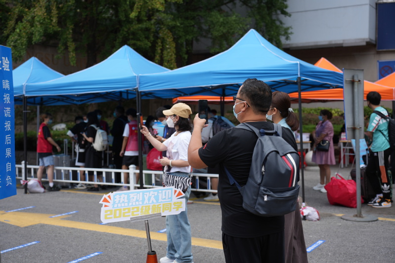 应用统计学专业一位同学的父亲说,他来自贵州,选择江科大、选择应用统计学,都是孩子的自主选择,提及孩子的专业,他说道:“我们这一代都不了解,书读的少啊。”但是他愿意百分百尊重孩子的意愿,支持他到自己喜欢的学校读书。送儿千里,想到与孩子即将到来的分别,这位父亲流露出了殷殷关切。他表示,担心还是会有,但是孩子上大学了,还是要放手。“希望他能好好读书,未来找到一份理想的工作。”言语虽朴实,而最不舍的嘱托都在不言之中。计算机专业的朱昊天同学踏入校园后,他的妈妈依旧不舍离开,在校门口静静目送孩子远去。当提及对孩子的期望,她说:“进入大学意味着孩子已经长大了,希望他在学好课程知识的基础之外,还能掌握社交本领,处理好人际关系,学会自我规划。”