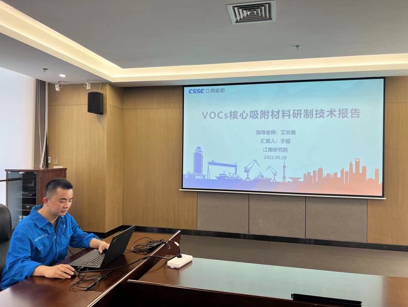 “针对江南造船实际需求与工况条件具备工业化生产潜力的分子筛材料成品、高效稳定的靶向吸附体系、海洋重防腐涂料VOCs成分谱及特性数据库、小型环境实验舱和仿真系统、分子筛设计合成与反应体系构建方面的发明专利……”采访中,于超自信满满地说起自己在工程实训期间取得的各项成果。