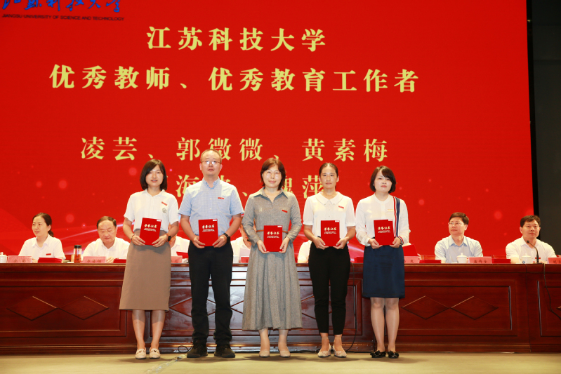 在庄严的国歌声中,大会拉开帷幕。校党委书记葛世伦主持大会;校党委副书记、副校长景旭文宣读《关于表彰2022年度全省城乡妇女岗位建功先进集体(个人)的决定》《关于表彰镇江市五一劳动奖和工人先锋号的决定》《关于2022年度镇江市“出彩教育人”评选结果的通知》《关于表彰2021-2022学年优秀教师、优秀教育工作者和先进集体的决定》《关于表彰从事教育工作满三十年教职工的决定》;党委常委、副校长胡爱祥宣读《关于表彰2021-2022学年优秀辅导员、优秀班主任和优秀学业导师的决定》。在全场热烈的掌声中,与会领导为受表彰集体和个人代表颁奖。