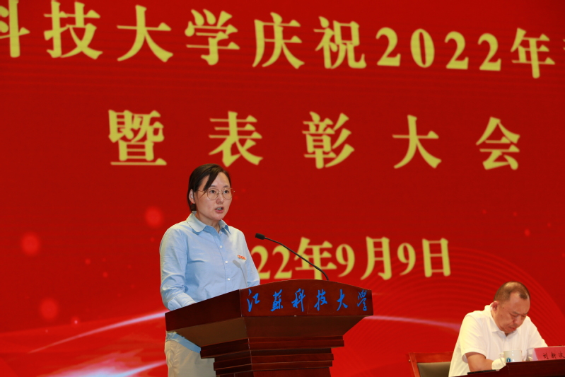 优秀教师代表、经济管理学院鞠可一老师在发言中谈到,教师是一份神圣而伟大的职业,它不仅是太阳底下最光辉的事业,也是太阳底下最幸福的职业。“一支粉笔染双鬓,三尺讲台度春秋。我们要像水一样润物无声、像水一样坚持坚韧、像水一样博大无私,也像水一样涓涓如溪流、浩瀚如江海。我们将始终以江科大人的荣誉严格要求自己,立足本职,勇往直前,肩负起为党育人、为国育才的使命。