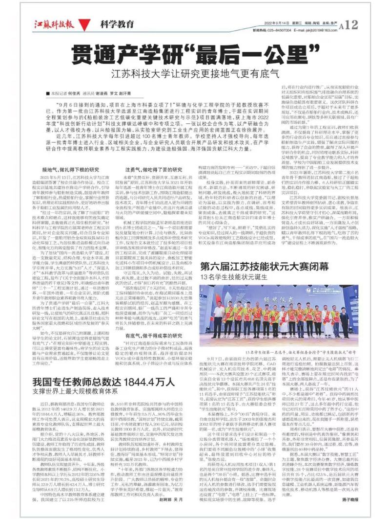 江苏科技报2022年9月14日第A12版 http://www.jskjb.com:8081/xpaper/appnews/100313/110402/119402-1.shtml