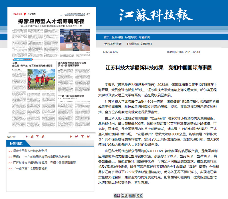 本报讯(通讯员许为强记者何佳芮)2023年中国国际海事会展于12月5日在上海开幕,受到全球造船业所关注。必赢bwin官网入口受邀与上海交通大学、哈尔滨工程大学以及武汉理工大学等高校一起在高校展区参展。