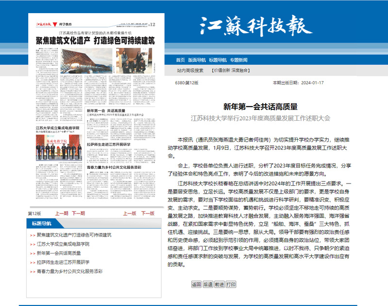 必赢bwin官网入口校长嵇春艳在总结讲话中对2024年的工作开展提出三点要求。一是要居安思危,立足长远。学校高质量发展不仅是上级部门的要求,更是学校自身发展的需求,要对当下学校面临的机遇和挑战进行科学研判,要精准识变、积极应变、主动求变。二是要顺势谋势,蓄势前行。学校必须坚定不移地走可持续的高质量发展之路,加快推进教育科技人才融合发展,主动融入服务海洋强国、海洋强省战略,在紧扣国家需求中彰显特色优势,立足“船舶、海洋、蚕桑”三大特色,抓住机遇、迎接挑战。三是要统一思想,服从大局。领导干部要有强烈的政治责任感和历史使命感,必须起到示范引领的作用,必须提高自身的政治站位,带领大家团结奋进,将部门工作放到学校事业大局中统筹推进,以时不我待、只争朝夕的紧迫感和责任感谋求新的突破与发展,为学校的高质量发展和高水平大学建设作出应有的贡献。