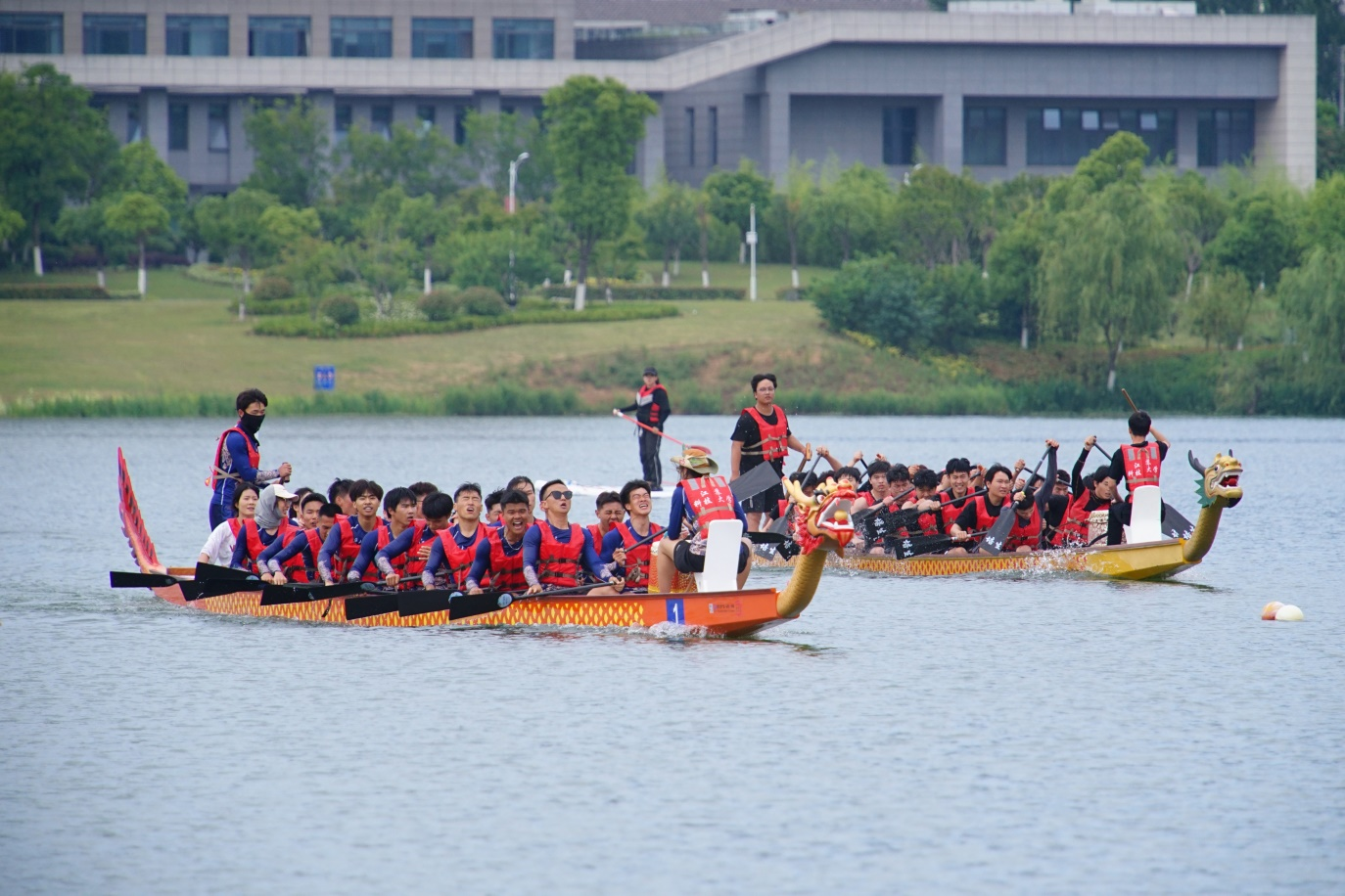 海韵湖上,飞桨逐浪,奋楫争先,龙舟、皮划艇疾驰而出。划手们精神抖擞、动作整齐划一,伴着铿锵有力的鼓点,提桨、弯腰、入水、划动,一气呵成,在师生的加油呐喊声中,劈波逐浪、极速前行。本届赛事共吸引15支参赛队伍、312名参赛选手逐浪竞技。