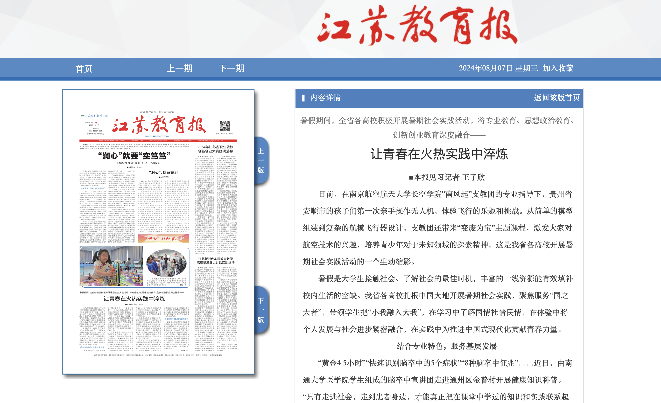 江苏教育报2024年8月7日头版http://epaper.jsenews.com/Article/index/aid/8457576.html