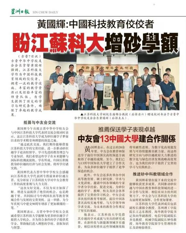 拿督黄国辉坦言,在过去的二十余年里,中友会在推荐和保送学子前往中国顶尖高校深造方面取得了卓越的成绩。至今,我们已与13所中国知名大学建立了合作关系,为众多砂拉越学子提供了赴华深造的机会。此外,中友会还多次举办中国高等教育展、硕士研究班、学术与文化讲座,邀请中国各领域的专家学者分享经验,促进交流,为砂拉越的学子、教师、校友及社会各界提供了宝贵的学习机会。中友会还多次组织教育考察团,前往中国各著名高校实地考察,与大学领导和学者交流,为未来的教育合作奠定了坚实的基础。