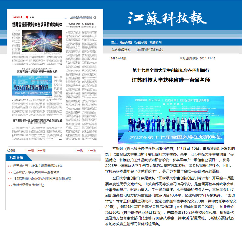 相关链接: 江苏科技报、学习强国(江苏科技报) 、 江苏教育报、学习强国(江苏教育报)