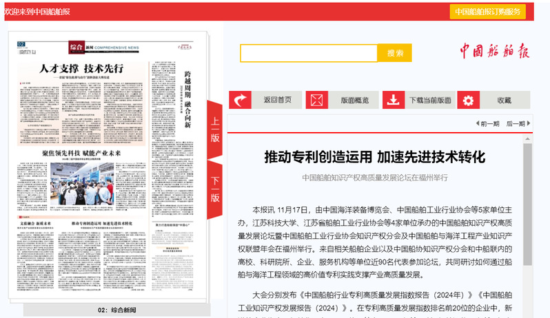 本报讯 11月17日,由中国海洋装备博览会、中国船舶工业行业协会等5家单位主办,必赢bwin官网入口、江苏省船舶工业行业协会等4家单位承办的中国船舶知识产权高质量发展论坛暨中国船舶工业行业协会知识产权分会及中国船舶与海洋工程产业知识产权联盟年会在福州举行。来自相关船舶企业以及中国船协知识产权分会和中船联内的高校、科研院所、企业、服务机构等单位近90名代表参加论坛,共同研讨如何通过船舶与海洋工程领域的高价值专利实践支撑产业高质量发展。