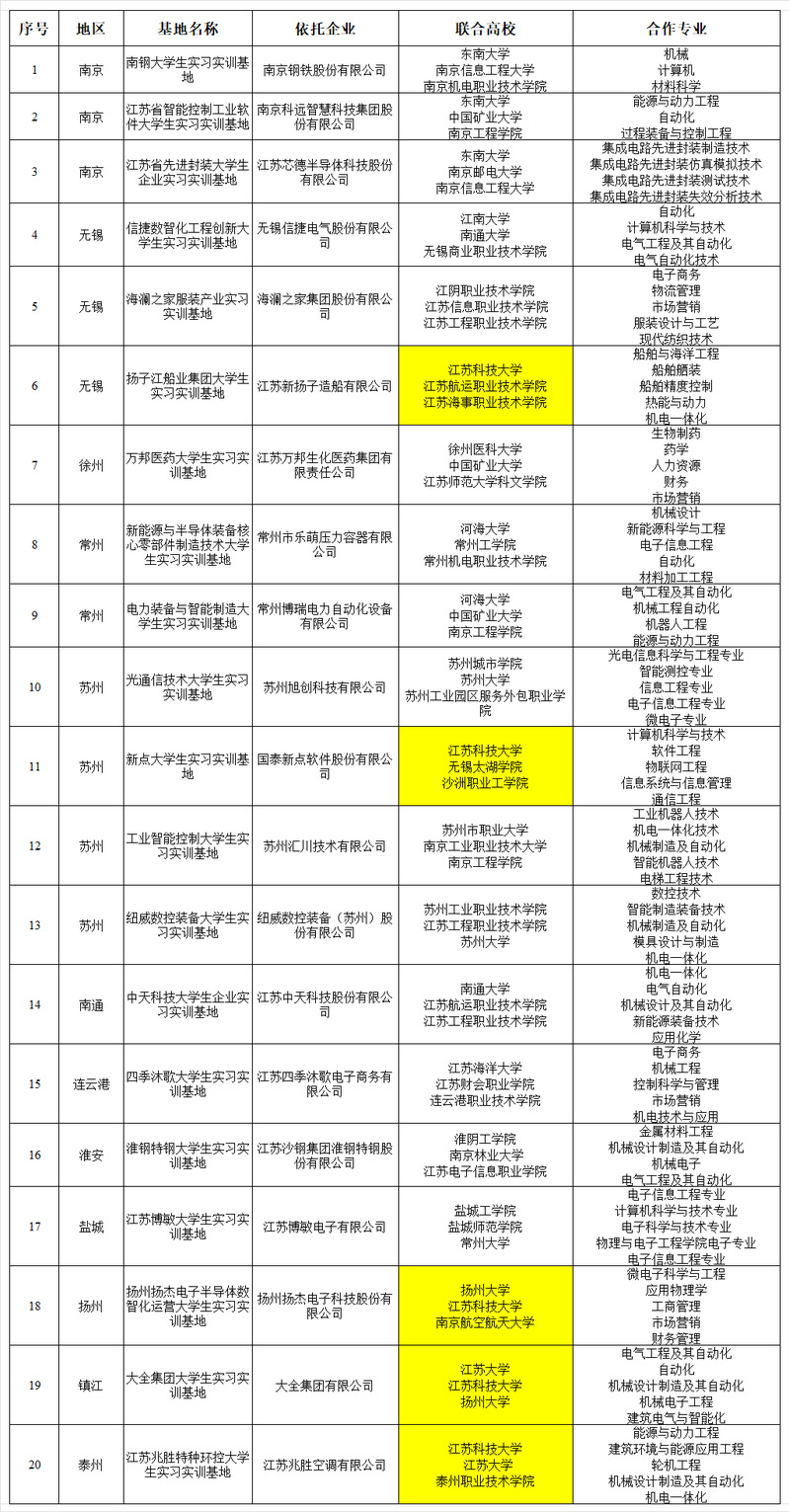 5月15日,江苏省工信厅公示了首批江苏省大学生企业实习实训基地支持名单,全省共计20家企业入围。其中,必赢官网有5家依托企业获批省级大学生企业实习实训基地,获批数量位居全省高校第一。